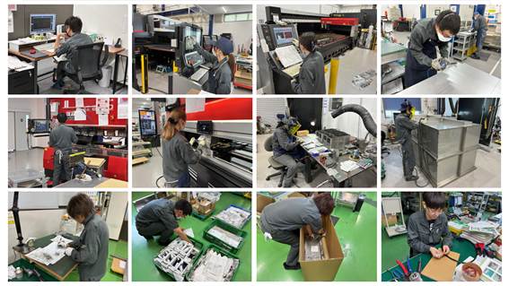私たちは、精密板金加工を核に「設計 → 板金 → 組立・配線」までを一貫して行う“技術集団”です。